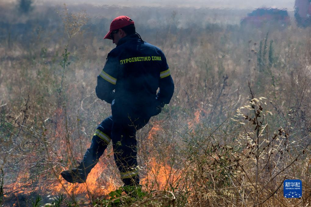7月27日,消防員在希臘沃洛斯郊外參與滅火。新華社發(fā)(馬里奧斯·羅洛斯攝)