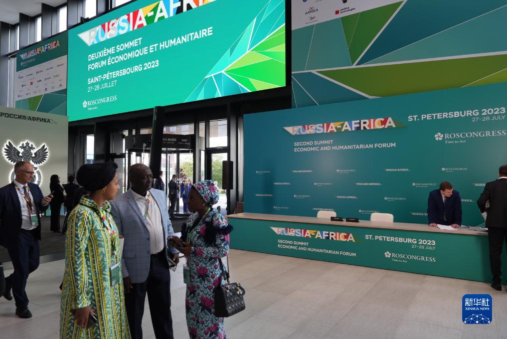 7月27日,在俄羅斯圣彼得堡,俄非峰會(huì )與會(huì )人員在會(huì )場(chǎng)交流。