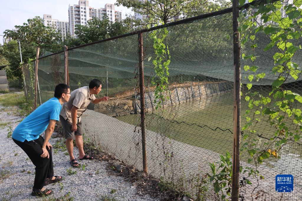 在位于江西省南昌市的江西省野生動(dòng)物救護中心,汪志如(右)和工作人員在觀(guān)察收治的候鳥(niǎo)(7月16日攝)。