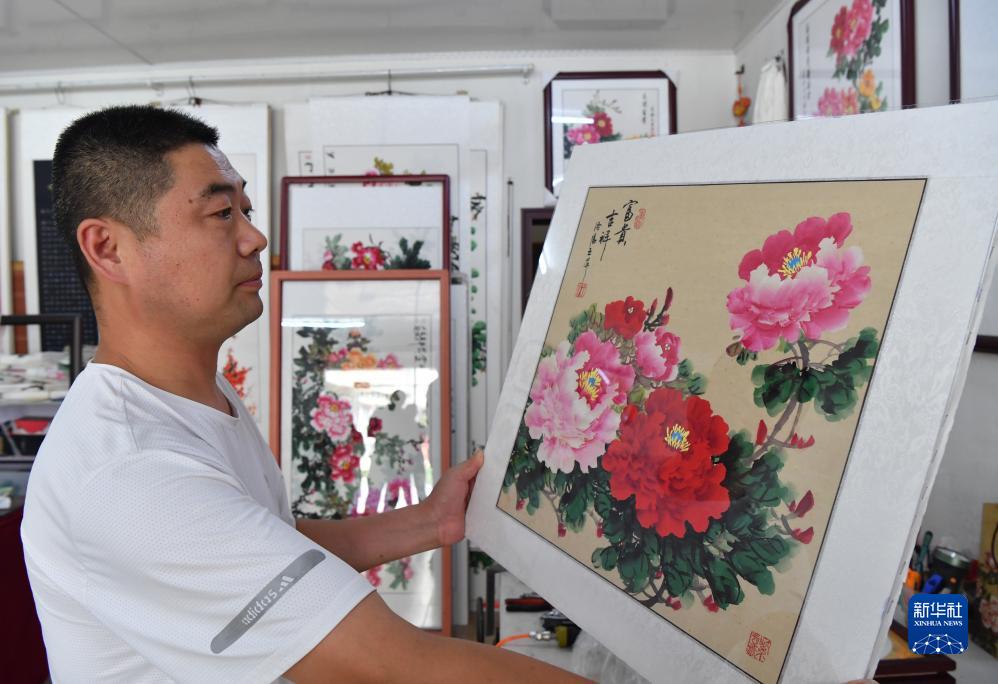 河南省洛陽(yáng)市孟津區平樂(lè )鎮平樂(lè )社區以牡丹畫(huà)產(chǎn)業(yè)聞名,“平樂(lè )農民牡丹畫(huà)”起源于20世紀80年代。近年來(lái),當地傳承推廣牡丹文化,加大畫(huà)師培養力度,積極發(fā)展牡丹畫(huà)產(chǎn)業(yè),目前擁有畫(huà)師1000余人,相關(guān)從業(yè)人員3000余人,每年創(chuàng )作牡丹畫(huà)作品40余萬(wàn)幅,采取線(xiàn)上線(xiàn)下銷(xiāo)售模式,作品除國內市場(chǎng)外還遠銷(xiāo)美國、日本、新西蘭等國家和地區,不僅豐富了群眾的精神文化生活,還帶動(dòng)當地村民闖出一條文化傳承、文旅整合的鄉村振興發(fā)展新路。