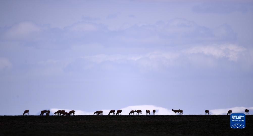 7月27日,一群藏羚羊在可可西里境內活動(dòng)。