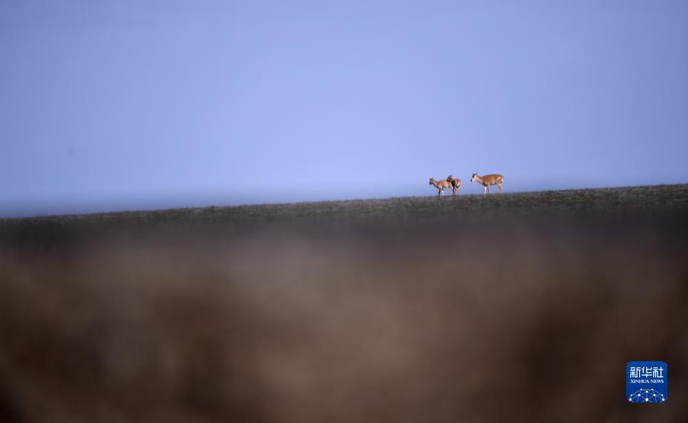 7月27日,幾只藏羚羊在靠近青藏公路的可可西里境內活動(dòng)。