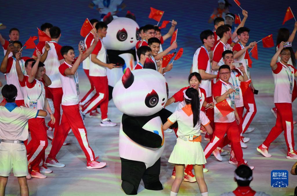 7月28日,中國大學(xué)生體育代表團在開(kāi)幕式上入場(chǎng)。