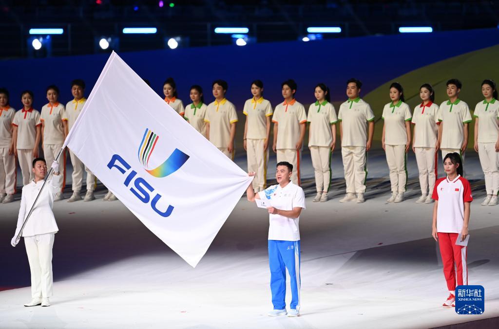 當晚,第31屆世界大學(xué)生夏季運動(dòng)會(huì )開(kāi)幕式在成都東安湖體育公園主體育場(chǎng)舉行。