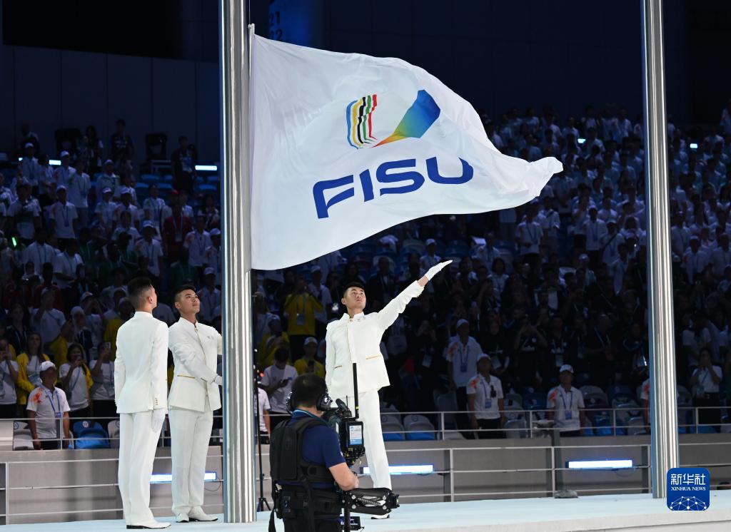 7月28日,國際大學(xué)生體育聯(lián)合會(huì )會(huì )旗在開(kāi)幕式上升起。