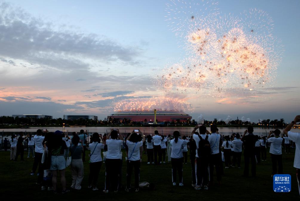 當晚,第31屆世界大學(xué)生夏季運動(dòng)會(huì )開(kāi)幕式在成都東安湖體育公園主體育場(chǎng)舉行。