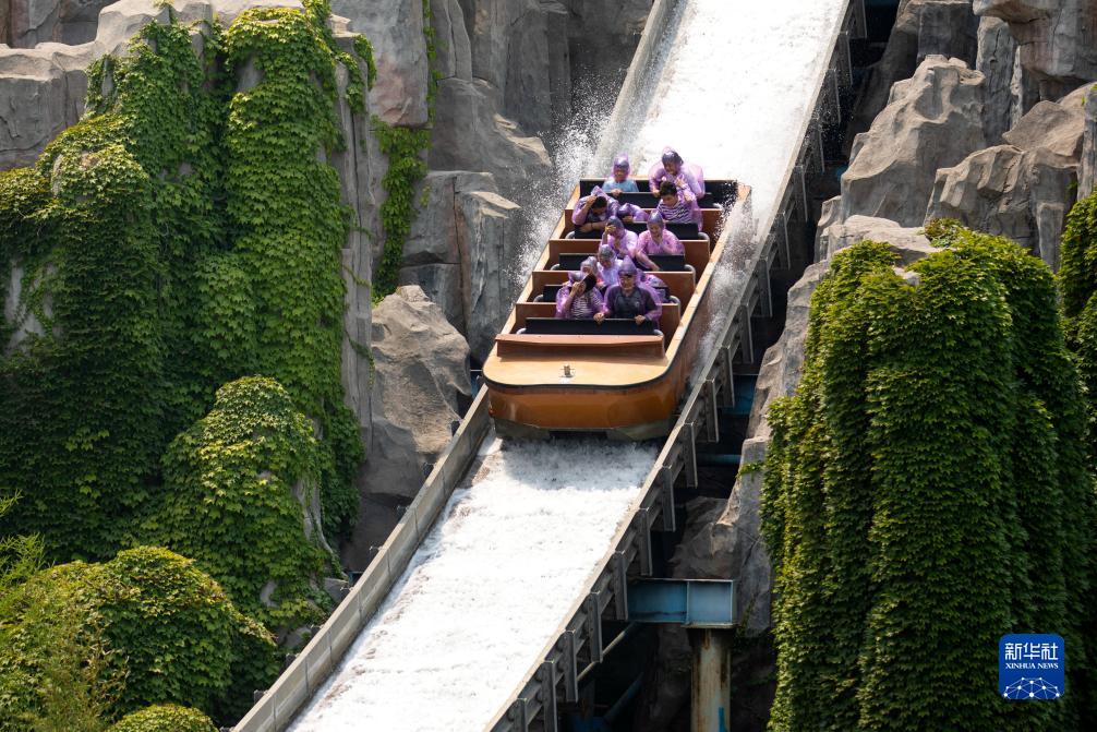 7月26日,游客在山東省東營(yíng)市廣饒縣孫子文化旅游區體驗“激流勇進(jìn)”項目。