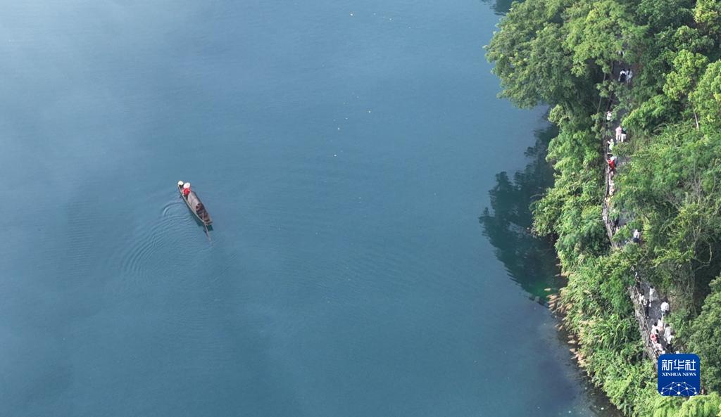 7月26日,游客在湖南省資興市小東江游覽(無(wú)人機照片)。