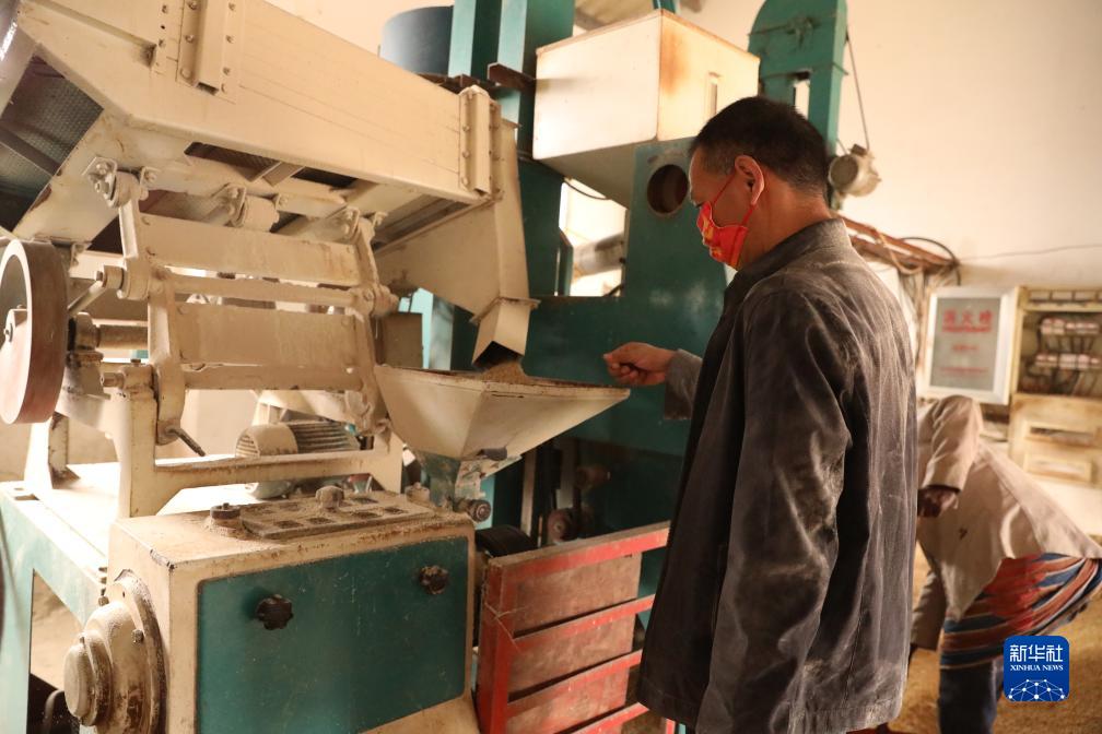 7月25日,在莫桑比克馬普托省博阿內地區,中國技術(shù)員張浩波在中莫農業(yè)技術(shù)示范中心加工水稻。