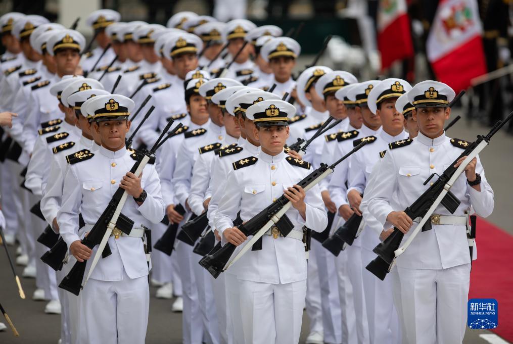 7月28日,秘魯海軍士兵參加在首都利馬舉行的獨立日慶?;顒?dòng)。