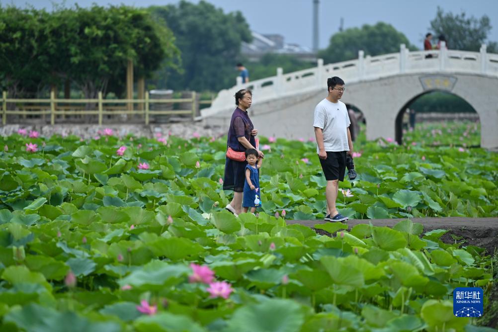 夏日,山西省太原市晉源區北大寺村的荷花競相開(kāi)放,吸引眾多游客前來(lái)觀(guān)賞。