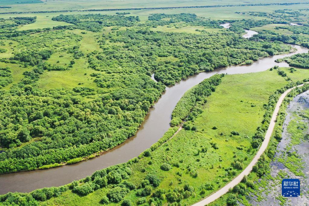 這是7月29日拍攝的免渡河國家濕地公園景色(無(wú)人機照片)。