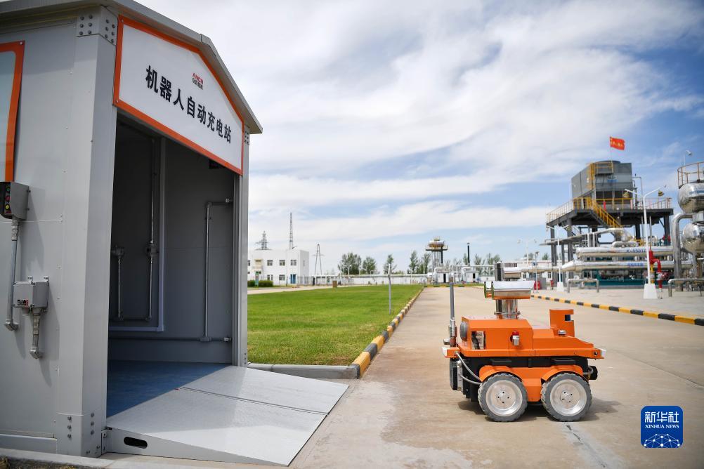 智能巡檢機器人在中國石油長(cháng)慶油田第三采氣廠(chǎng)蘇里格天然氣第六處理廠(chǎng)進(jìn)行日常巡檢(7月23日攝)。