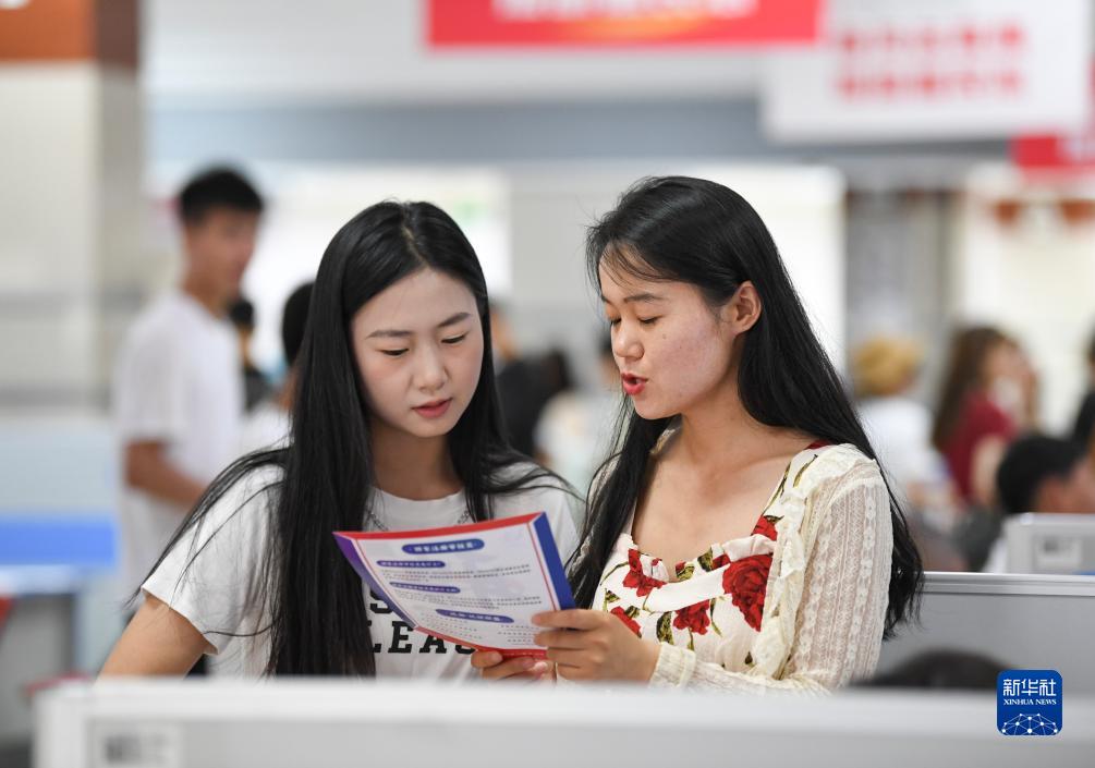 7月29日,求職者(左)在招聘會(huì )現場(chǎng)與用人單位交流。