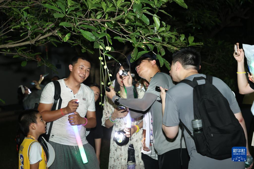 7月28日,粵港澳三地青少年在老師的指導下夜游植物園,了解植物奧秘、尋訪(fǎng)夜行性昆蟲(chóng)。