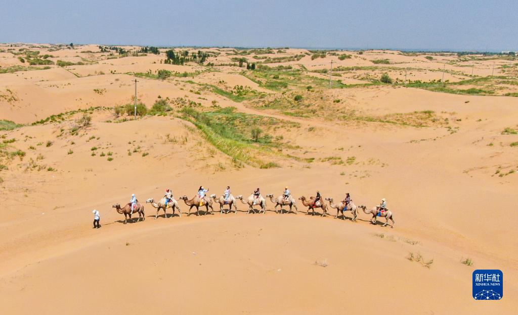 盛夏時(shí)節,內蒙古鄂爾多斯市達拉特旗境內的庫布其沙漠游客絡(luò )繹不絕,沙漠旅游一派火熱。游客們在飽覽大漠美景的同時(shí),也體驗騎駱駝、滑沙等項目的獨特魅力。