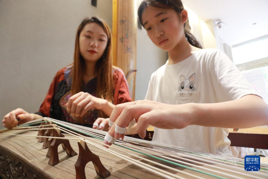 7月29日,在山東省高密市一家藝術(shù)培訓機構,學(xué)生練習古箏。