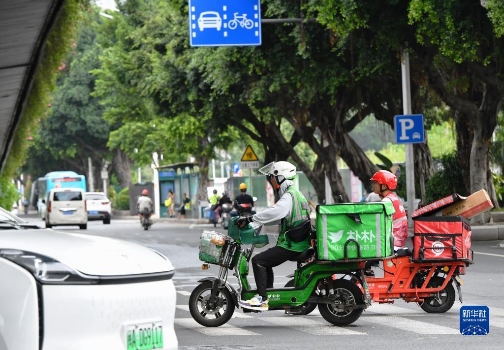 7月30日,在福州市晉安區連江路上,兩名送貨員在送貨。