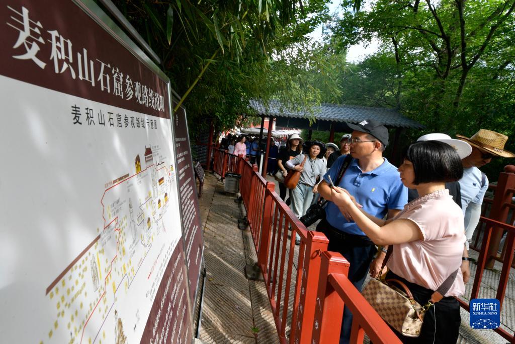 7月30日,游客在麥積山石窟查看參觀(guān)線(xiàn)路示意圖。
