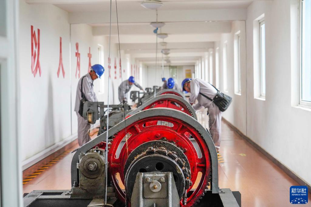7月31日,工作人員在河北省遵化市上關(guān)水庫檢查泄洪閘起重設備。
