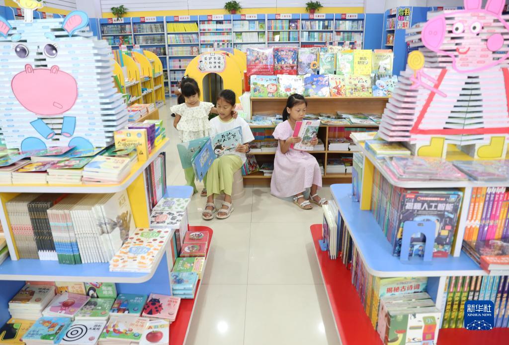 8月1日,在湖南省衡陽(yáng)市衡東縣新華書(shū)店,幾名小朋友在閱讀。