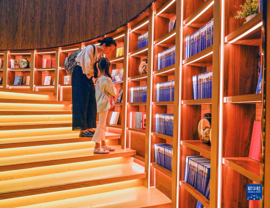 8月1日,家長(cháng)和孩子在河北省遵化市新華書(shū)店挑選書(shū)籍。