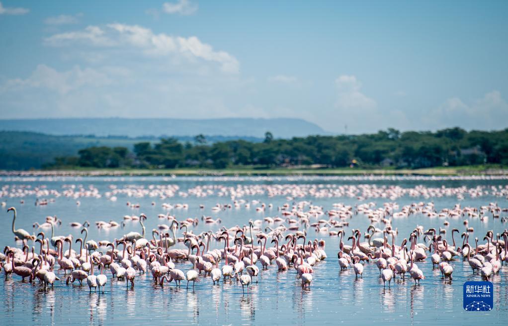 這是5月21日在肯尼亞埃爾門(mén)泰塔湖拍攝的火烈鳥(niǎo)。