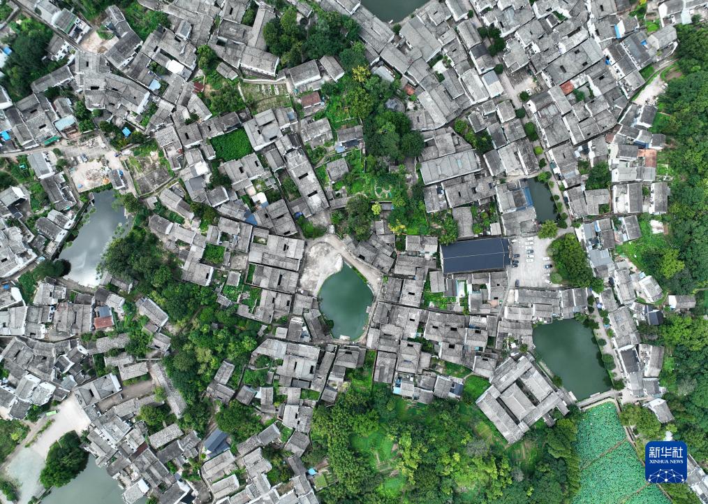 鳥(niǎo)瞰諸葛村(無(wú)人機照片,8月1日攝)。