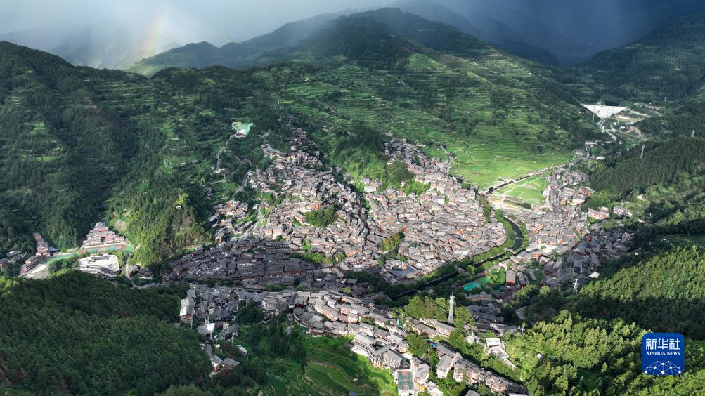 這是8月1日拍攝的貴州省黔東南苗族侗族自治州雷山縣西江千戶(hù)苗寨景區(無(wú)人機照片)。