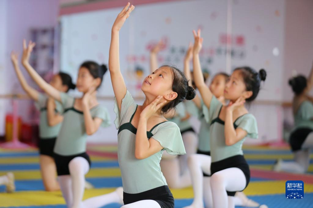8月1日,在山東省臨沂市沂南縣銅井鎮一家藝術(shù)培訓中心,孩子們在學(xué)習舞蹈。