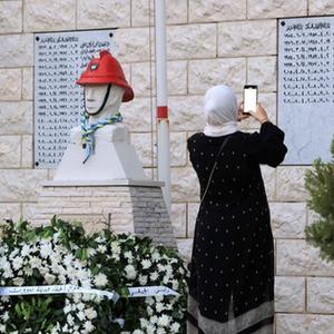 當日,黎巴嫩貝魯特消防部門(mén)舉行活動(dòng)悼念貝魯特港口大爆炸中犧牲的消防人員。2020年8月4日,貝魯特港口因存放的近3000噸硝酸銨被引燃發(fā)生大爆炸,造成200多人死亡,6500多人受傷。