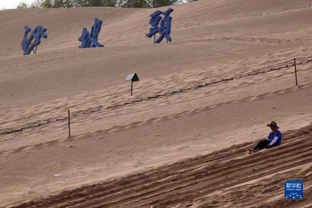 8月2日,游客在寧夏中衛市沙坡頭景區體驗滑沙。