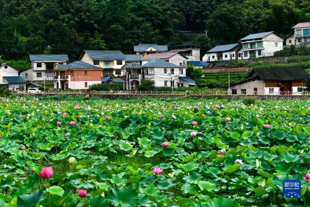 時(shí)下,貴州省岑鞏縣多地的荷花盛開(kāi),美麗的荷塘與村莊、稻田相映成趣,荷塘邊錯落有致的新民居、瓜果飄香的農家庭院,成為一道靚麗的風(fēng)景。