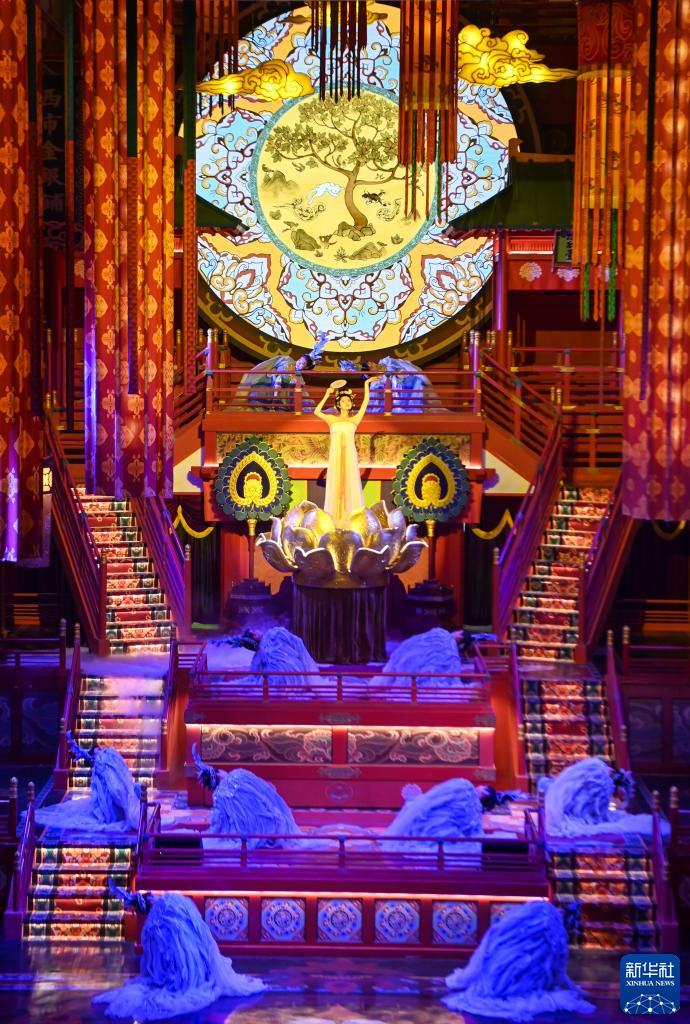8月2日,唐風(fēng)演藝《霓裳羽衣舞》的演員在長(cháng)安十二時(shí)辰主題街區表演。