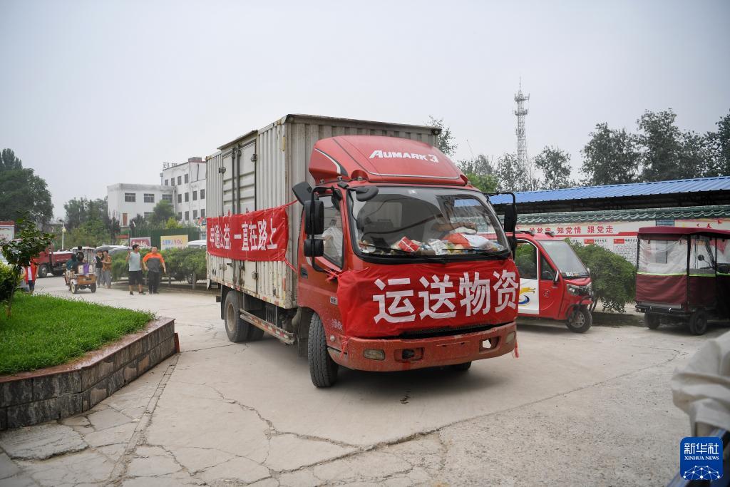 8月3日,運送物資的車(chē)輛駛入涿州市第三中學(xué)安置點(diǎn)。