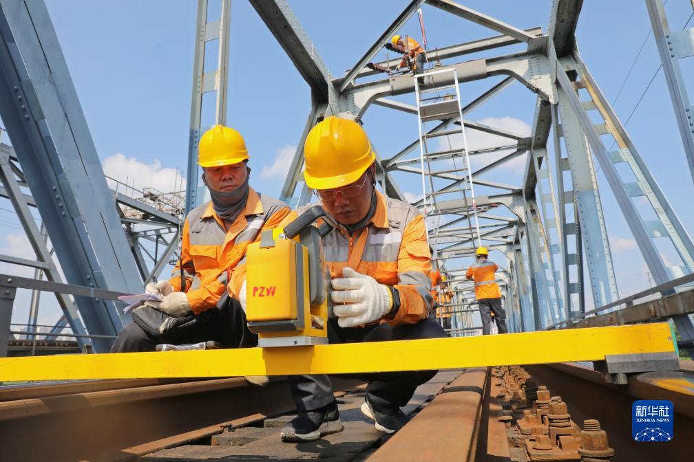 當日,中國鐵路上海局集團有限公司開(kāi)展“工電供”多工種聯(lián)合作業(yè),對隴海鐵路上行線(xiàn)邳州運河鐵路橋進(jìn)行檢修養護,為暑運安全提供保障。