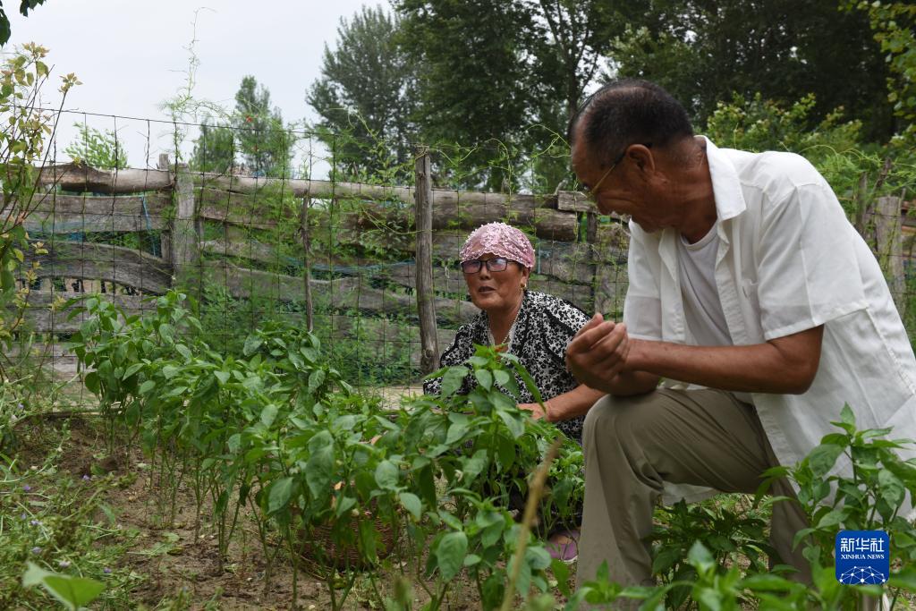 8月2日,百順和老伴正月在家里的小菜園勞作。