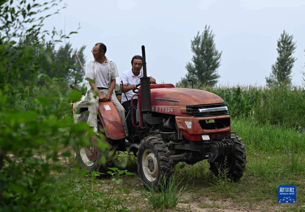 8月2日,百順(左)和三兒子金柱開(kāi)拖拉機去樹(shù)林。