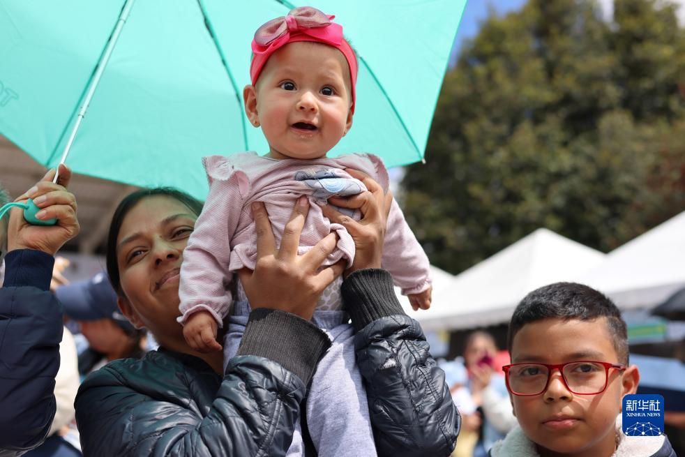 8月3日,在哥倫比亞首都波哥大,一位母親帶著(zhù)孩子參加公開(kāi)哺乳活動(dòng)。