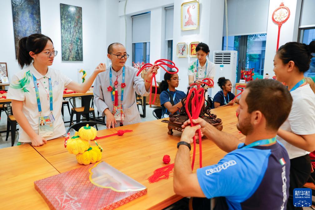 成都大運村里設置了包括皮影、剪紙、刺繡、草編等非遺項目在內的中國文化體驗項目,吸引眾多代表團成員前來(lái)參與。在這里,各代表團成員可以更加切近地感受、了解中國非遺文化的魅力。