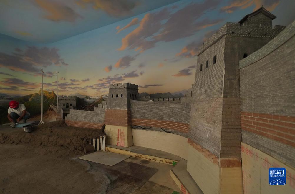 8月4日,工人在山海關(guān)中國長(cháng)城博物館進(jìn)行內部裝修施工。
