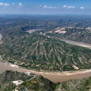 黃河奇灣位于山西省石樓縣與陜西省清澗縣交界的晉陜大峽谷內,奔騰不息的黃河流經(jīng)至此形成大彎,從空中俯瞰,蔚為壯觀(guān)。