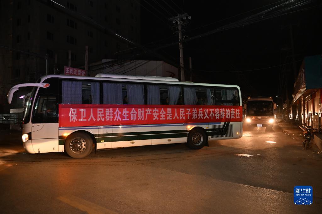 8月4日,在天津市靜海區臺頭鎮,武警天津總隊官兵夜間乘車(chē)進(jìn)行轉場(chǎng)。