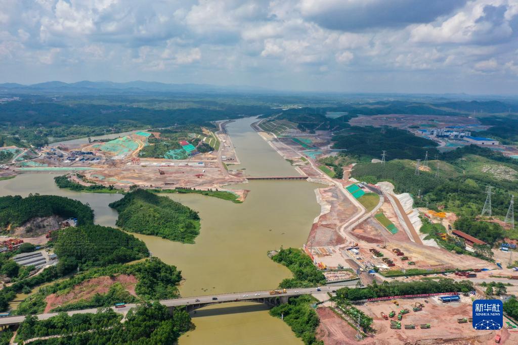 這是7月23日拍攝的建設中的平陸運河青年樞紐(無(wú)人機照片)。