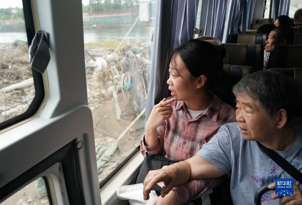 8月5日,北京市房山區青龍湖鎮口頭村村民乘坐大巴從安置點(diǎn)前往口頭村。