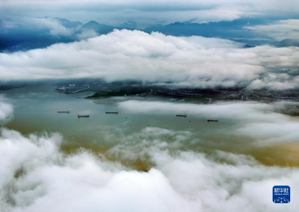 7月30日,船舶行駛在三峽大壩壩前水域(無(wú)人機照片)。