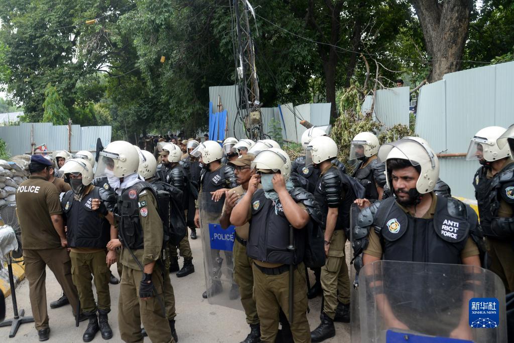 8月5日,警察在伊姆蘭·汗位于巴基斯坦東部旁遮普省首府拉合爾的私邸附近警戒。