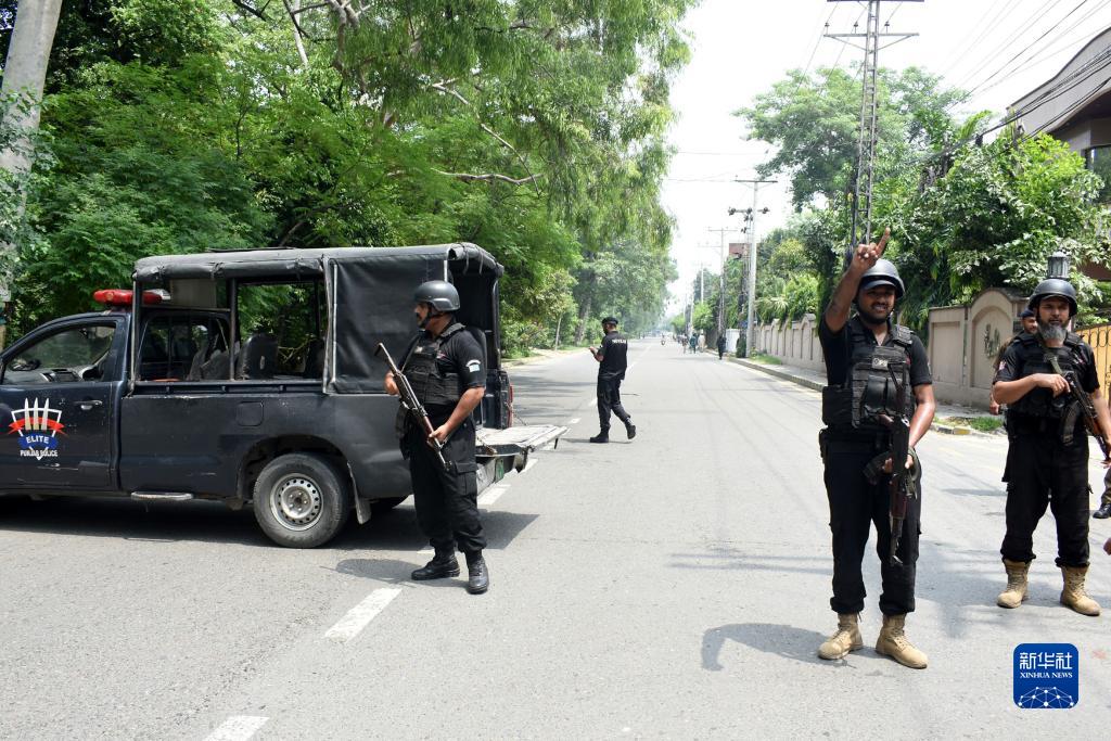 8月5日,警察在伊姆蘭·汗位于巴基斯坦東部旁遮普省首府拉合爾的私邸附近警戒。