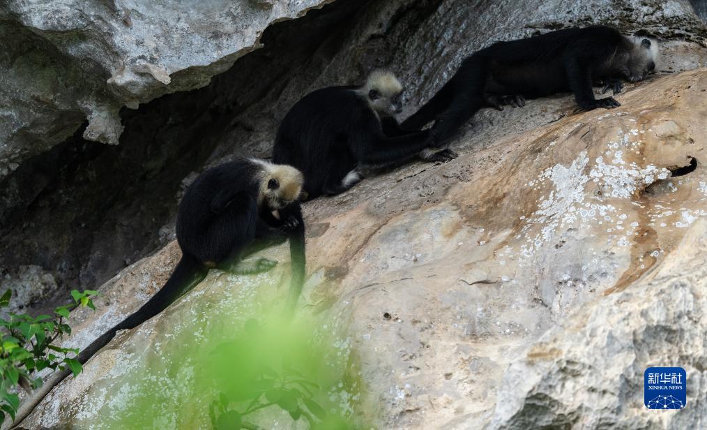 白頭葉猴,頭頂高聳著(zhù)一撮白毛,是我國特有的國家一級重點(diǎn)保護野生動(dòng)物,種群數量稀少,主要分布在廣西崇左市左江和明江之間約200平方公里的喀斯特石山地區。白頭葉猴還有個(gè)好聽(tīng)的名字——“石山精靈”。