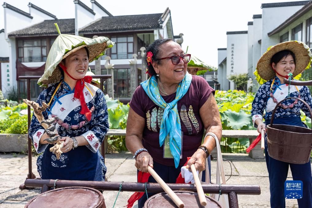 當日,來(lái)自美國、瑞士、奧地利、肯尼亞等國家的60余名外國友人,在浙江省湖州市參加2023中國文化行·走進(jìn)南潯活動(dòng),實(shí)地了解、體驗富有特色的江南水鄉文化。